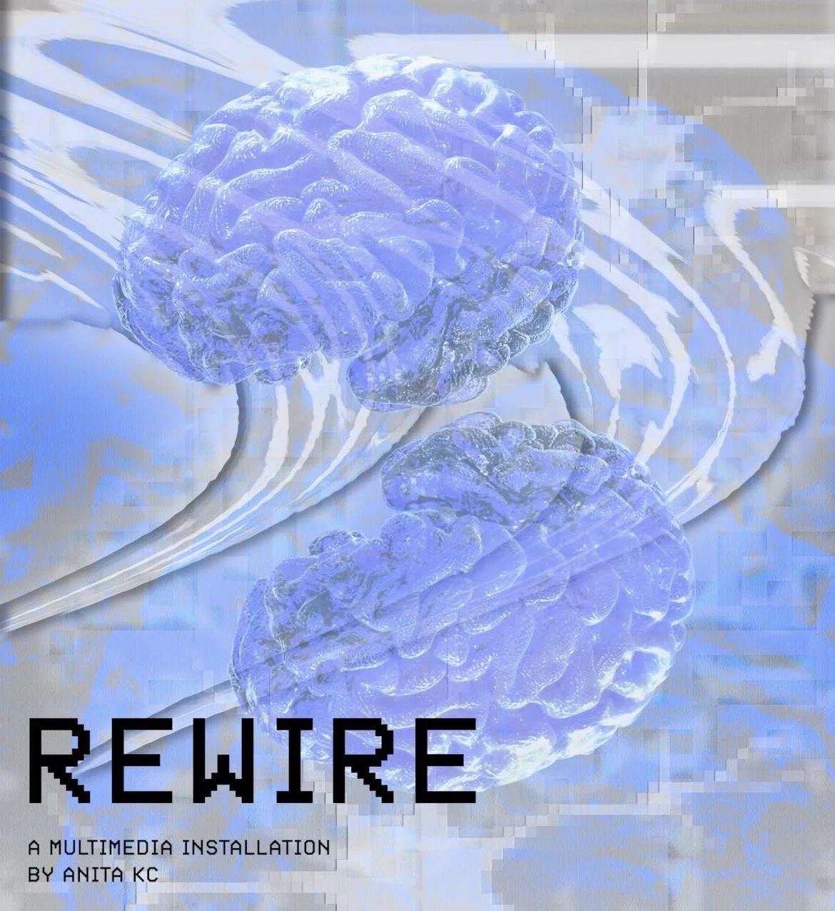 REWIRE is a multimedia exhibition that explores self-perception as a relational process, and examines the ways it can become distorted through internal narratives and the gaze of others. Centered on a 3D model created from an MRI scan of the artist’s own brain, the cerebral landscape becomes both subject and site that is mirrored, distorted, and reshaped through live interaction, video feedback, and emotive soundscapes.